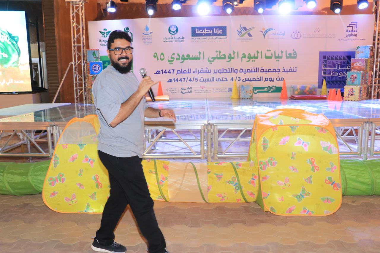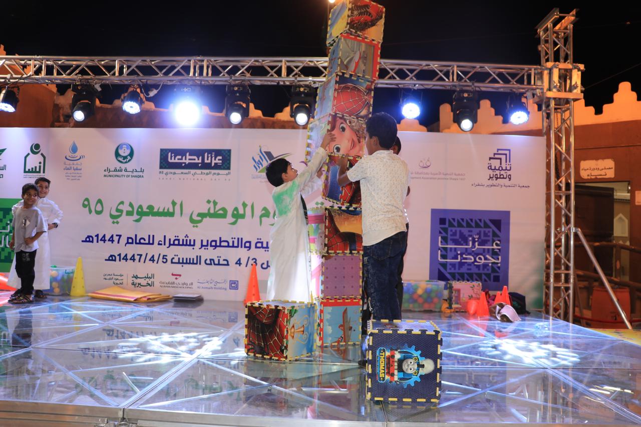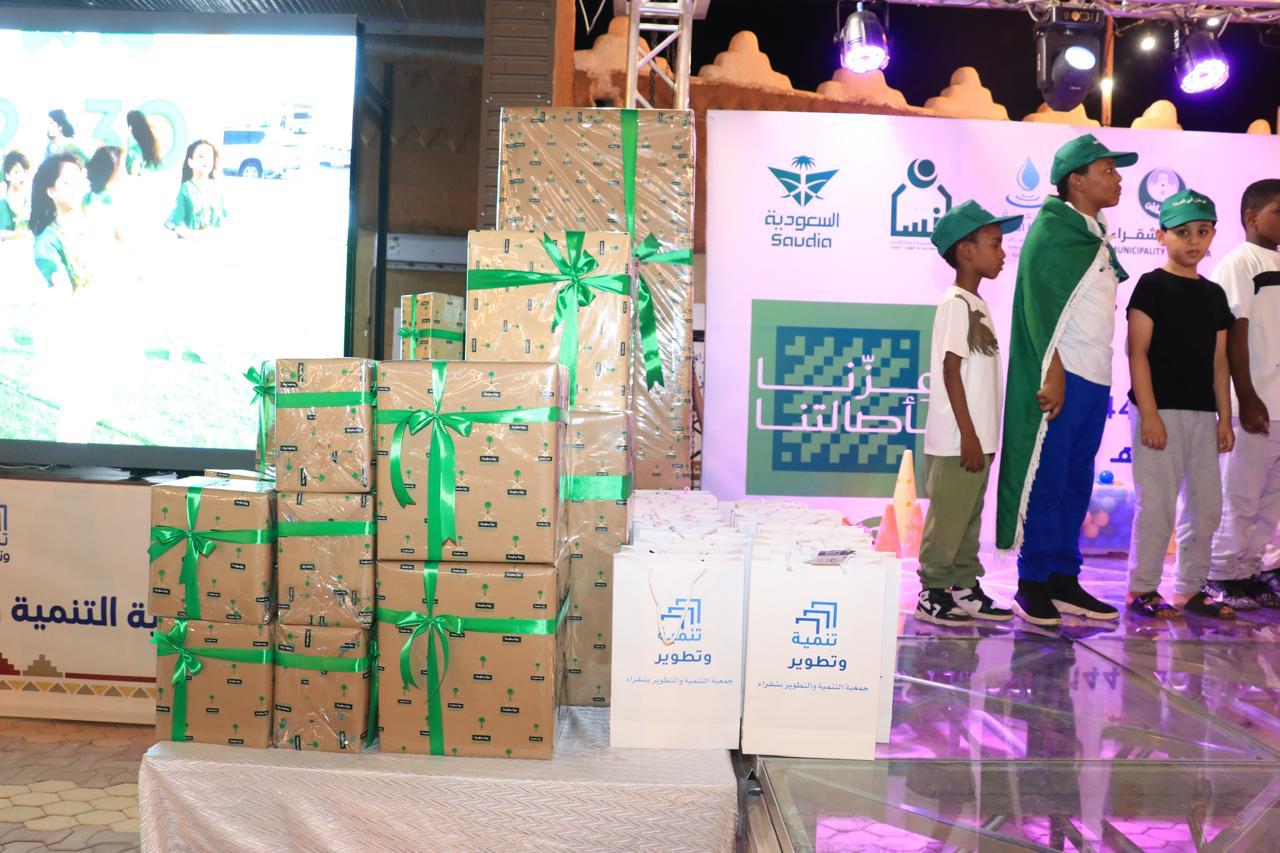 يوم السبت الموافق 1447/4/5 هـ اختتمت جمعية التنمية والتطوير بشقراء فعاليات اليوم الوطني السعودي 95 والتي استمرت على مدار ثلاثة أيام بحضور اجمالي 29510 زائر طوال أيام الفعاليات حيث احتوت على العديد من البرامج والمسابقات والاركان التراثية والمعارض كما قدمت الجمعية اكثر من 1000 هدية للأطفال و2000 كراس تلوين و100 جهاز كهربائي و6 جوالات تم السحب عليها بشكل يومي