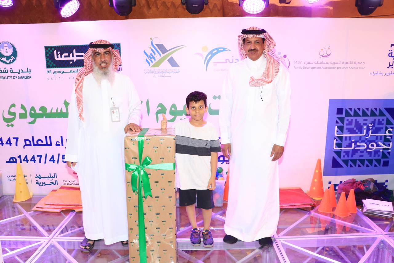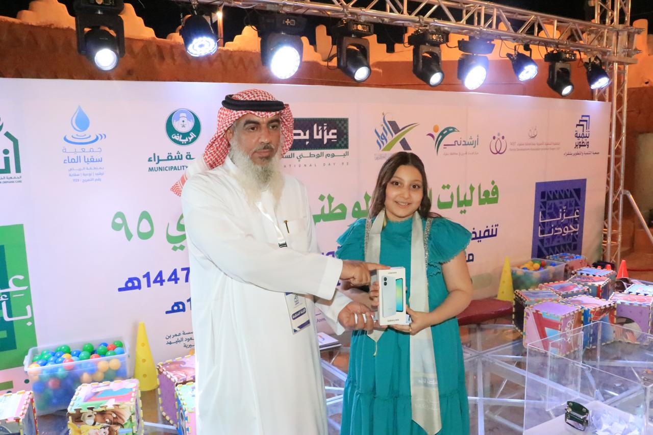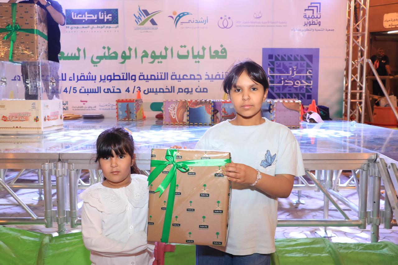 يوم السبت الموافق 1447/4/5 هـ اختتمت جمعية التنمية والتطوير بشقراء فعاليات اليوم الوطني السعودي 95 والتي استمرت على مدار ثلاثة أيام بحضور اجمالي 29510 زائر طوال أيام الفعاليات حيث احتوت على العديد من البرامج والمسابقات والاركان التراثية والمعارض كما قدمت الجمعية اكثر من 1000 هدية للأطفال و2000 كراس تلوين و100 جهاز كهربائي و6 جوالات تم السحب عليها بشكل يومي